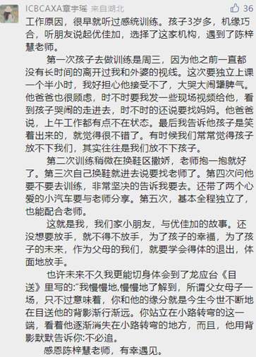 對孩子特別有耐心愛心和方法,孩子經常在家里念叨陳老師,也會把最愛的東西同她分享:“我想把這個玩具帶給陳老師!”